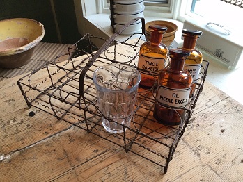 BSC 4 < N E W > フランス アンティーク グラス用ワイヤーバスケット 35.0cm x 26.5cm x 8.0cm/17.5cm (幅 x 奥 x 高/ハンドル含高)