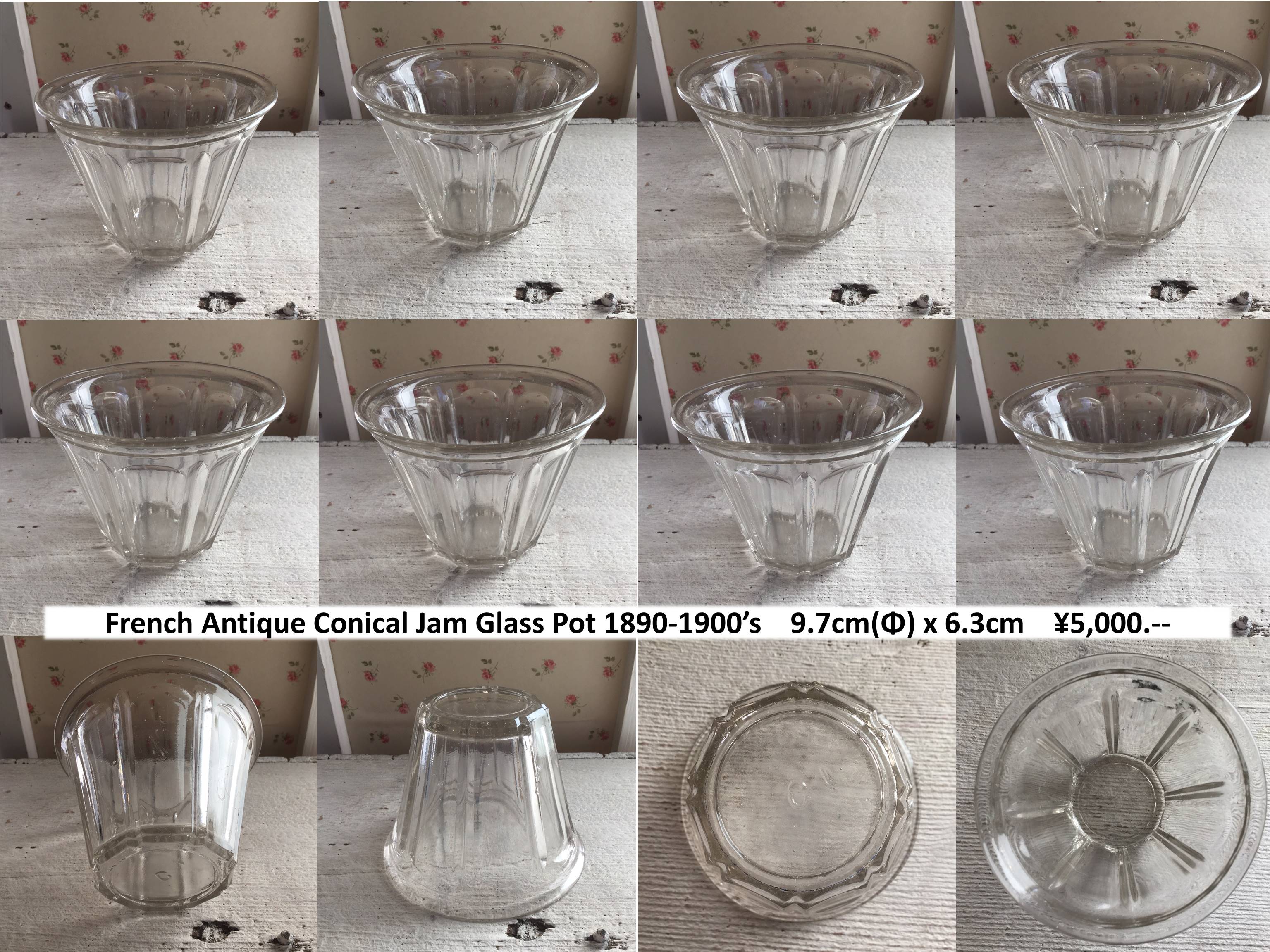 CAF 4 フランス アンティーク ジャム用ガラス・ポット 1890年代〜1900年代初期 9.7cm(Φ) x 6.3cm(H)