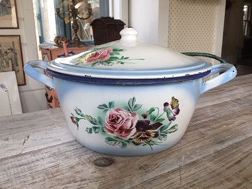 NAB 1 フランス アンティーク ココット(ホウロウ製) バラ&パンジー(JAPY社) 38.0cm x 36.0cm x 19.0cm (W x Φ x H)