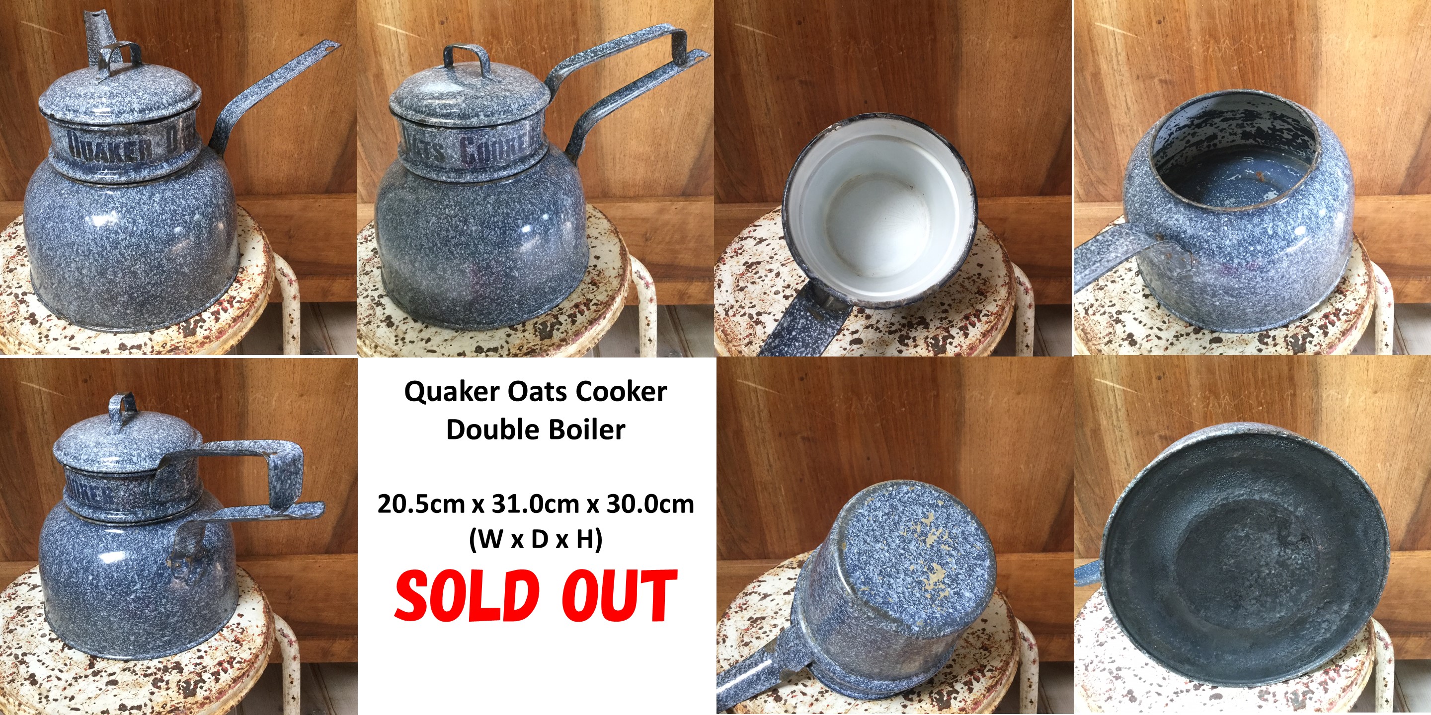 NAB 2 イギリス アンティーク クゥェーカー オーツ社製 オートミール・ポリッジ調理用 ホウロウ湯煎鍋(Double Boiler) SOLD OUT 20.5cm x 31.0cm x30.0cm (W x D x H)