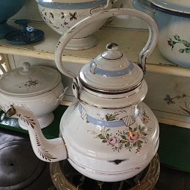<ポット/ケトル> ホウロウのポットは外観がよくても、フィルターの部分がさびてしまっているもの、あるいはフィルターのメッシュに大きな穴が開いてしまっているものもしばしば見られます。陶磁器のポットでは注ぎ口にかけのあるのもが多くみられます。