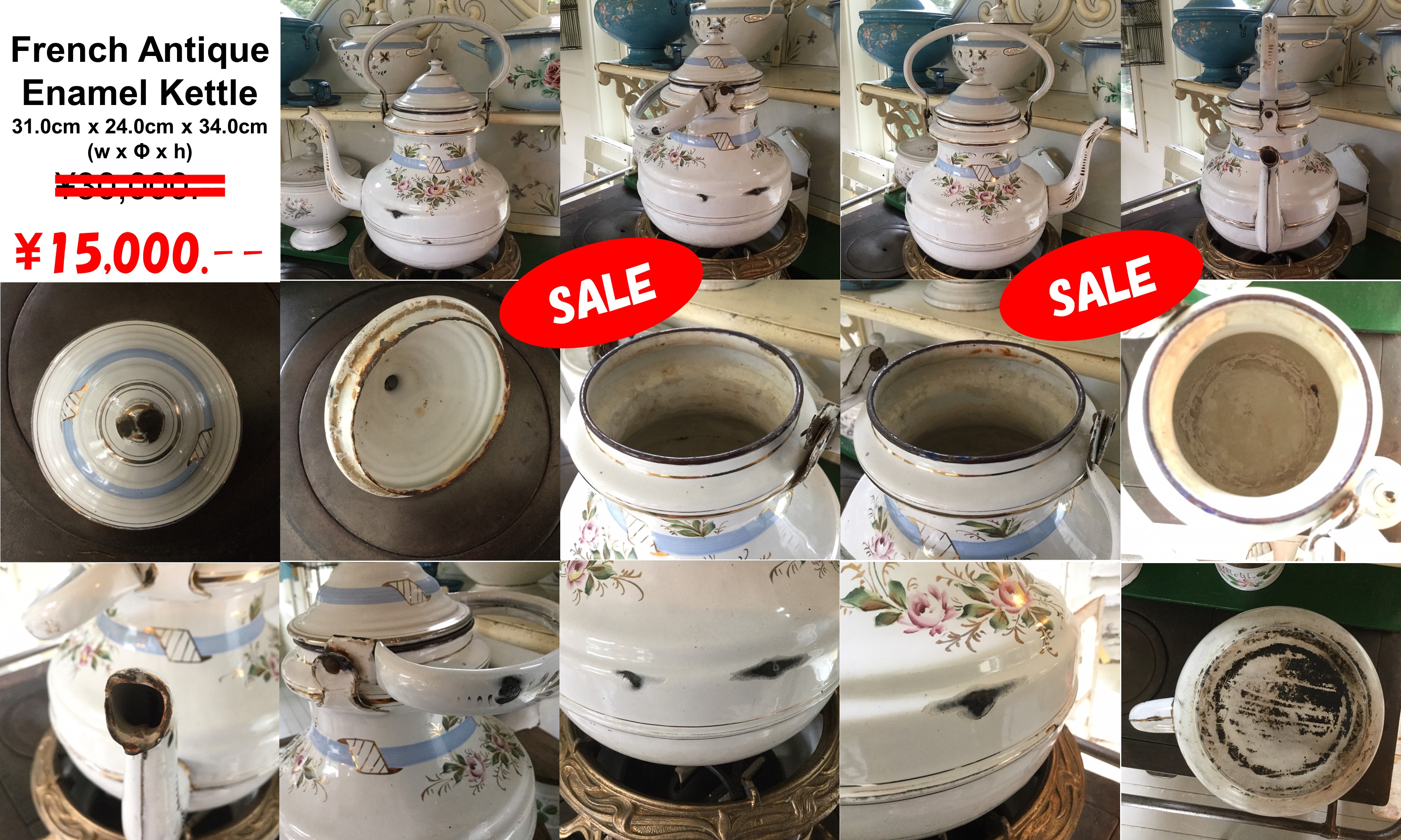 CPT 1 フランス アンティーク ホウロウ製ケトル 31.0cm x 24.0cm x 34.0cm (W x Φ x H)