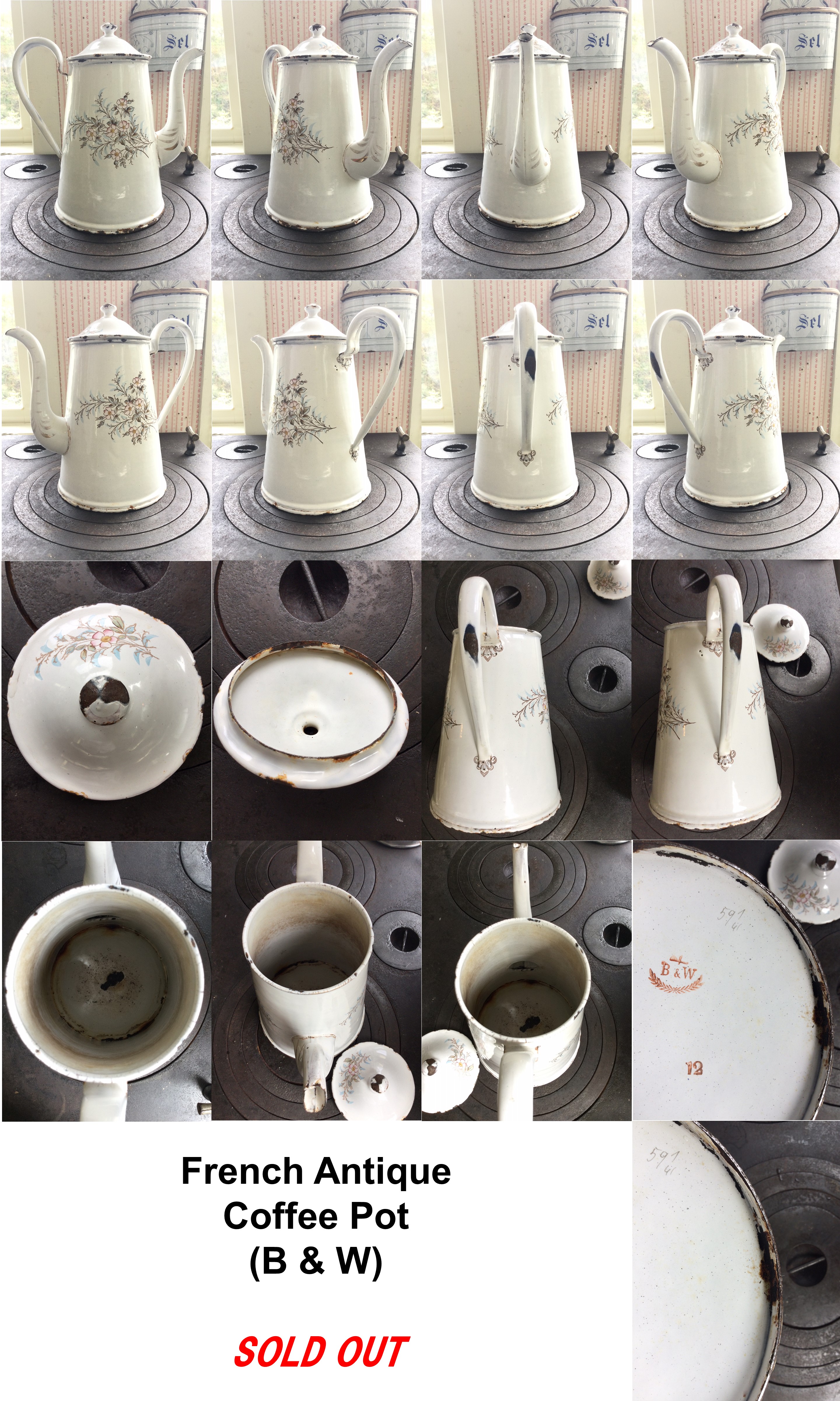 CPT 3 < N E W > フランス アンティーク ホウロウ製コーヒーポット B & W SOLD OUT (W x D/Φ x H)